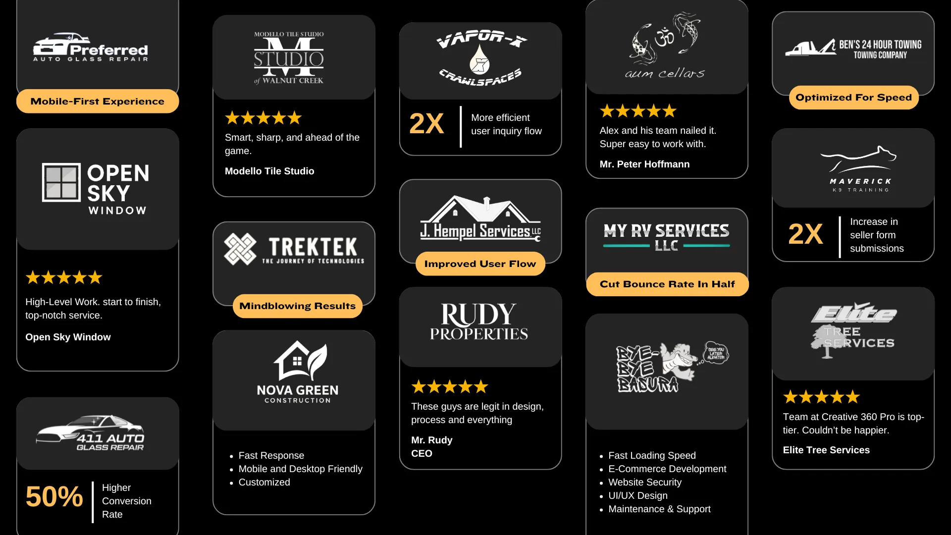 At Creative 360 Pro, we offer a comprehensive range of services to help businesses establish and maintain a strong online presence. Our services include: